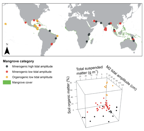 Key contribution: This study uses remotely sensed datasets to characterize geomorphic settings across the tropics with the goal of identifying differences that are relevant for restoration projects. The study uses spatial layers of both suspended sediment as well as tidal range to primarily classify the settings, and emerges with three different classes: